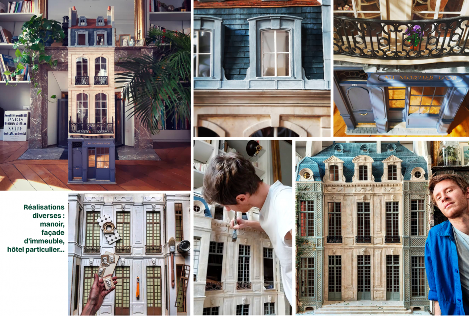 Je n’ai pas de site internet, mes projets viennent principalement par le bouche à oreille et via Instagram, où je publie mes créations. Je participe aussi à des expositions, notamment à Paris, Londres, New York, Milan et Taïwan. Parmi les pièces exposées, on retrouve des créations originales comme un manoir breton, un immeuble parisien, une maison du Marais et un hôtel particulier du 17ᵉ siècle. L’une de mes miniatures est actuellement exposée à Milan et partira ensuite à Taïwan. Lors de l'exposition à Paris, j'ai reçu des commandes pour l’année. J'ai également attiré l'attention d’un galeriste, ce qui a débouché sur une exposition collective avec d’autres miniaturistes, dont Hannah Levesque, qui crée des maquettes en papier, et Nicolas Pierre, qui se spécialise dans des bâtiments plus petits et dans le nord de Paris. Depuis toujours, je partage ma passion avec d’autres amateurs de miniatures.
