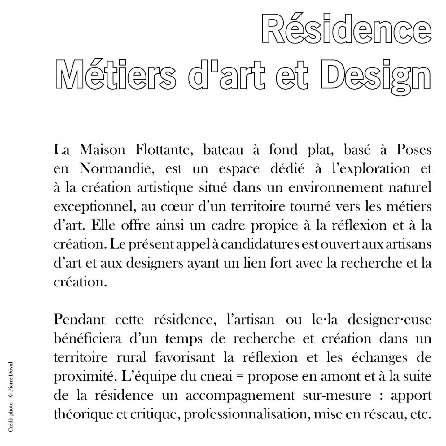 Pour la deuxième année consécutive, le Cneai=, Centre national édition art image, ouvre son appel à candidature Résidence Métiers d’art et design, pour les designer·euses et les artisans d’art. En mai ou en septembre, il·elle aura l’occasion d’effectuer une résidence d’un mois sur la Maison Flottante, à Poses, dans l'Eure, à 2h de Paris.