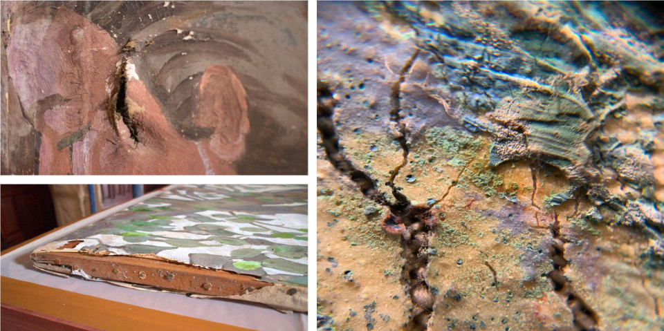 Réalisées dans les années 1930, ces peintures imposantes s'élèvent à plus de trois mètres de hauteur. Sur une période de six semaines, les étudiants, guidés par leur enseignant, se sont consacrés à la restauration de ces œuvres. Leur travail minutieux a inclus une analyse approfondie, un nettoyage soigné de chaque toile, ainsi que la consolidation de ces pièces fragilisées. En effet, plusieurs peintures présentaient des signes notables de détérioration, comme des déchirures et des craquelures, tandis que le bois et les toiles étaient endommagés.
