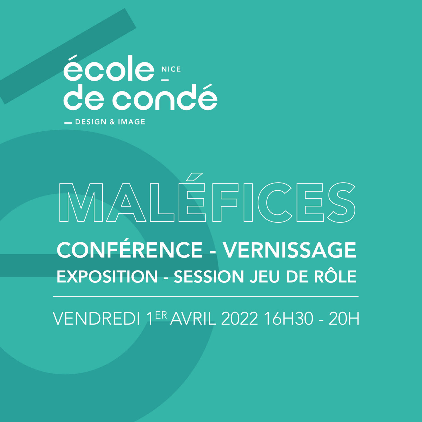 Partenariat jeu de rôle Maléfices - EvènementNos jeunes illustrateurs en 2ème année de bachelor, ont fait une proposition à l'éditeur, à l'occasion des 38 ans du jeu de rôle Maléfices. De ce fait, nous organisons un événement sur notre campus, ce vendredi 1er avril ! Et vous êtes bien sûr conviés ! 😍 Voici le déroulé : ➡ 16h30 : conférence avec Olivier Sanfilippo (Illustrateur-Cartographe), Mathieu Saintout (Editeur Arkhane Asylum) et Pascal Berkonicz Gaudo (scénariste de jeux de rôle). Cette conférence présentera le travail d'illustrateur/cartographe et présentera également le jeu et la relation entre les 3 différents métiers des animateurs. ➡ 18h00 : Vernissage de l'exposition du travail de nos étudiants, à l'occasion des 38 ans du jeu. ➡ 18h30 : tables de jeux, réservées à nos étudiants actuels. On espère vous voir très nombreux !!📍 Ecole de condé Nice : 4 Rue Biscarra, Nice.