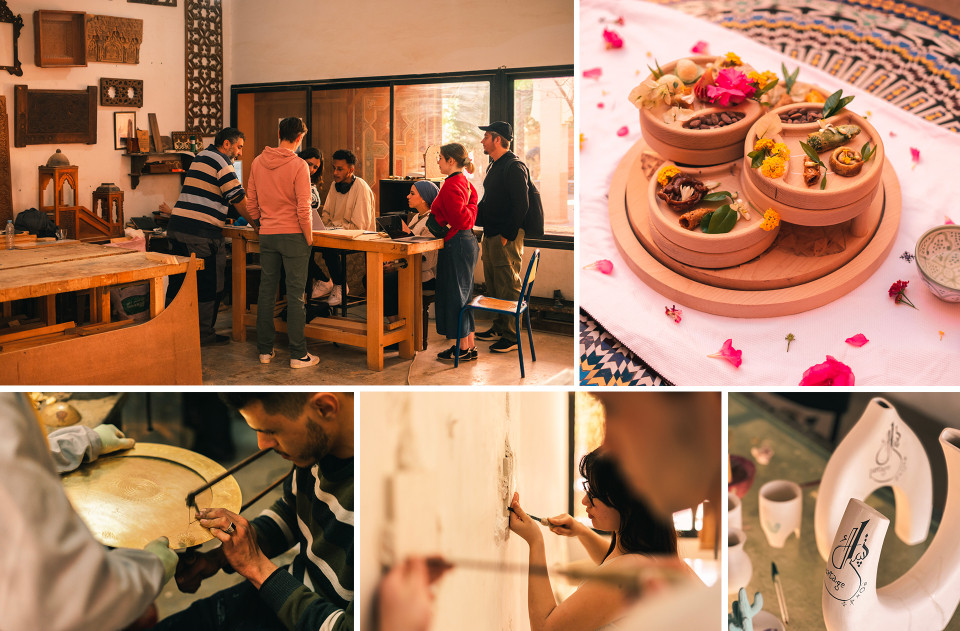 Cette expérience immersive s’est tenue au Centre de Formation des Métiers de l’Artisanat Marocain (CFQMAM), où les étudiants ont pris part à des ateliers dirigés par des artisans marocains expérimentés. Cette collaboration leur a permis d'acquérir des savoir-faire traditionnels qu'ils ont su intégrer dans des projets de design contemporain. Quatre ateliers ont été mis en place : poterie, plâtre, dinanderie et travail du bois. Les créations ont été pensées de manière à pouvoir être commercialisées à un coût abordable.
