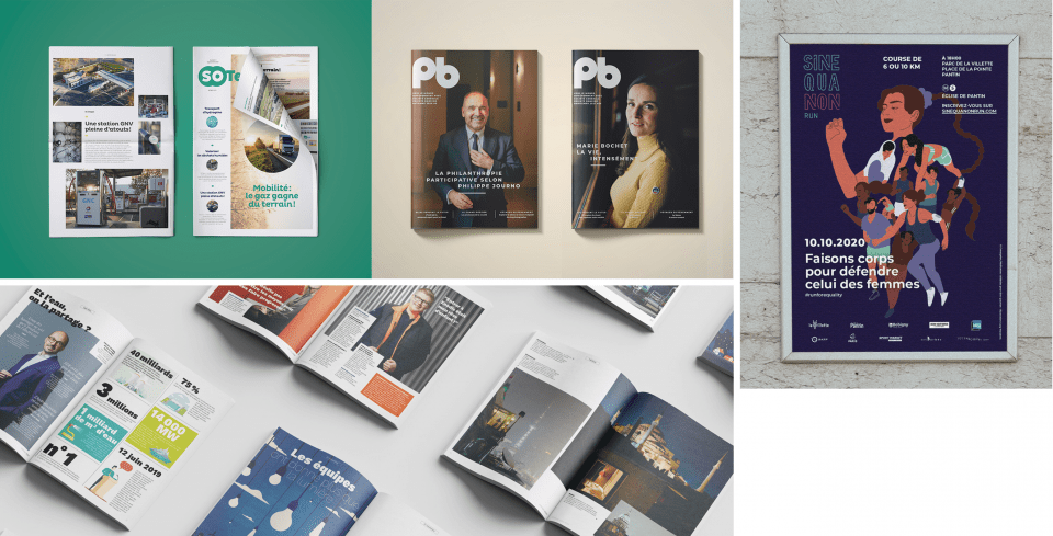 Au sein d’Ici Barbès, j’ai géré de nombreux magazines, notamment pour la Société Générale et EDF, ce qui m’a amené à collaborer avec des illustrateurs et des photographes, et à réaliser divers shootings photo. J’y ai également conçu des chartes graphiques, notamment pour GRTgaz et La Mutuelle Générale.