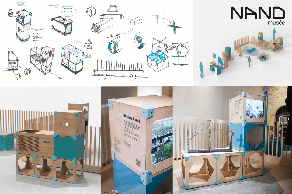 Je citerais le Nano Musée. Nous avons conçu un dispositif d’exposition modulable et facilement déployable, répondant aux exigences muséographiques, scénographiques et techniques définies par les scénarios d'usages, de transport, d'installation, de visite et d'animation. Ce projet m'a particulièrement marqué par son caractère innovant et sa capacité à répondre à des besoins variés et complexes. En décembre 2023, le Nano Musée a été récompensé par un Janus du Savoir décerné par l’Institut Français du Design.