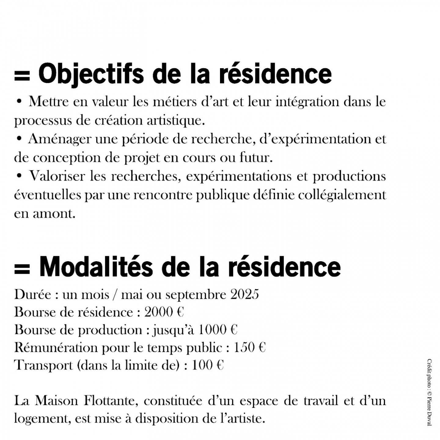 Cette résidence est ouverte aux aux artisans d’art et aux designer·euses dont la pratique justifie d’un lien avec le champ de la recherche et de la création. Les candidatures collectives et les familles sont les bienvenues.