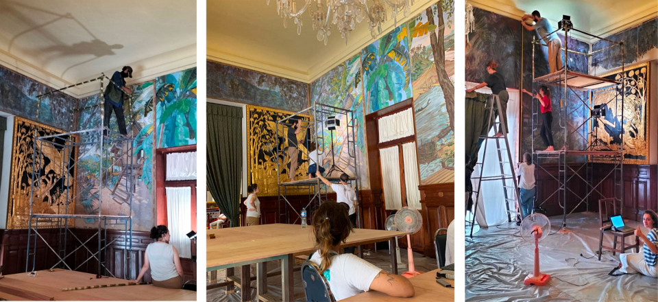 Leur mission était la restauration de cinq oeuvres d'Alix Aymé, illustrant des scènes de la vie traditionnelle et rituelle à Luang Prabang. Ces peintures monumentales, qui représentent un pan important de la culture locale, sont exposées sur les murs du Musée National de la République Populaire du Laos.