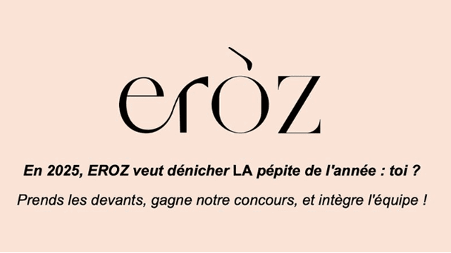 ➡️ Adresse d’envoi : candidature@eroz.fr avec en objet CONCOURS EROZ 2025 - NOM/PRENOM