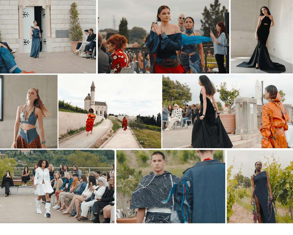Au crépuscule, le Château de Bellet s'est métamorphosé en un lieu baigné de lumière dorée et empreint de mystère. Près de 400 invités, comprenant 100 partenaires professionnels ainsi que les familles et amis des étudiants, futurs étudiants, ont été accueillis dans une ambiance évoquant des rituels anciens et mystiques. Les modèles, vêtus de tenues d’un blanc immaculé, se sont préparés en coulisses, incarnant une pureté spirituelle avec une palette de couleurs dominée par le blanc, l’argent et l’or, symbolisant la lumière sacrée.