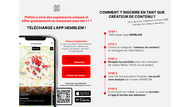 CondéConnect vous a dégotté LE bon plan pour financer vos sorties en échange d'un peu de temps : Hemblem, l'app qui permet de découvrir et de tester gratuitement des adresses en échange de contenus.