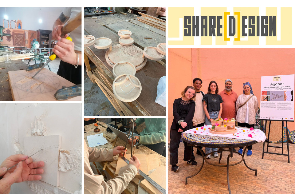 Du 19 au 23 février 2024, la ville de Marrakech a servi de cadre à une rencontre entre tradition, artisanat et innovation grâce au challenge Share Design organisé par l'école Art’Com Sup. Quatre étudiants de troisième année en Bachelor Design Produit de l'École de Condé Bordeaux, Louise Payeur, Victor de Pontavice, Julie Chamalbide et Antoine Canguilhem, accompagnés de leur professeur Laurent Lesieur, ont rejoint cet événement créatif. Ce challenge autour des arts de la table a stimulé une réflexion sur l'artisanat à l'ère du numérique et des intelligences artificielles, invitant à redéfinir l'approche manuelle et à revisiter les matériaux, incitant ainsi les jeunes designers à innover en termes de conception et pensée créative.