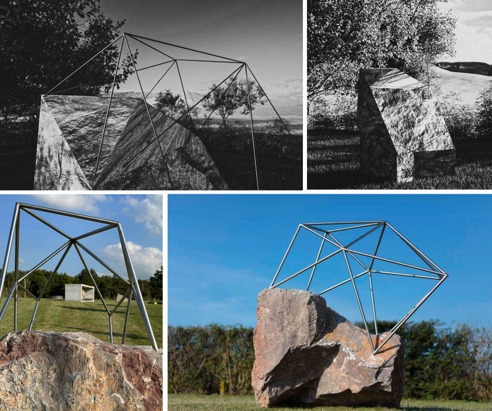 J’aimais aussi l’idée de créer sur une interaction avec l’homme. J’ai donc sélectionné une pierre qui invite à la pause, à la contemplation, et en faisant converger l’acier vers le centre du champ de vision, l’idée d’une constellation prend tout son sens, symbolisant un dialogue continu entre l’humanité et la nature.