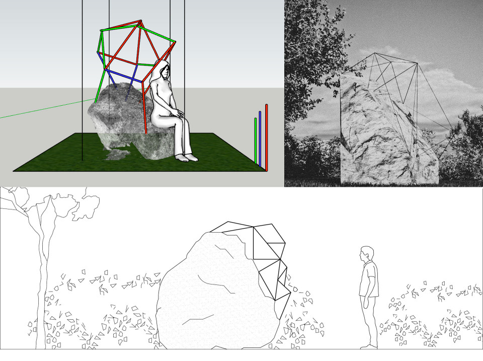 Je souhaitais exprimer la rencontre entre la matière et le matériau. Dans mon projet, le matériau est soutenu par la matière qui lui donne son élan. Cette micro-architecture est un rappel que la nature est le fondement de l’Homme, elle est son support dont ce dernier doit tirer sa force.
